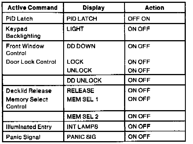 Driver Door Module Active Command Index