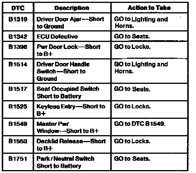 Driver Door Module Diagnostic Trouble Code Index