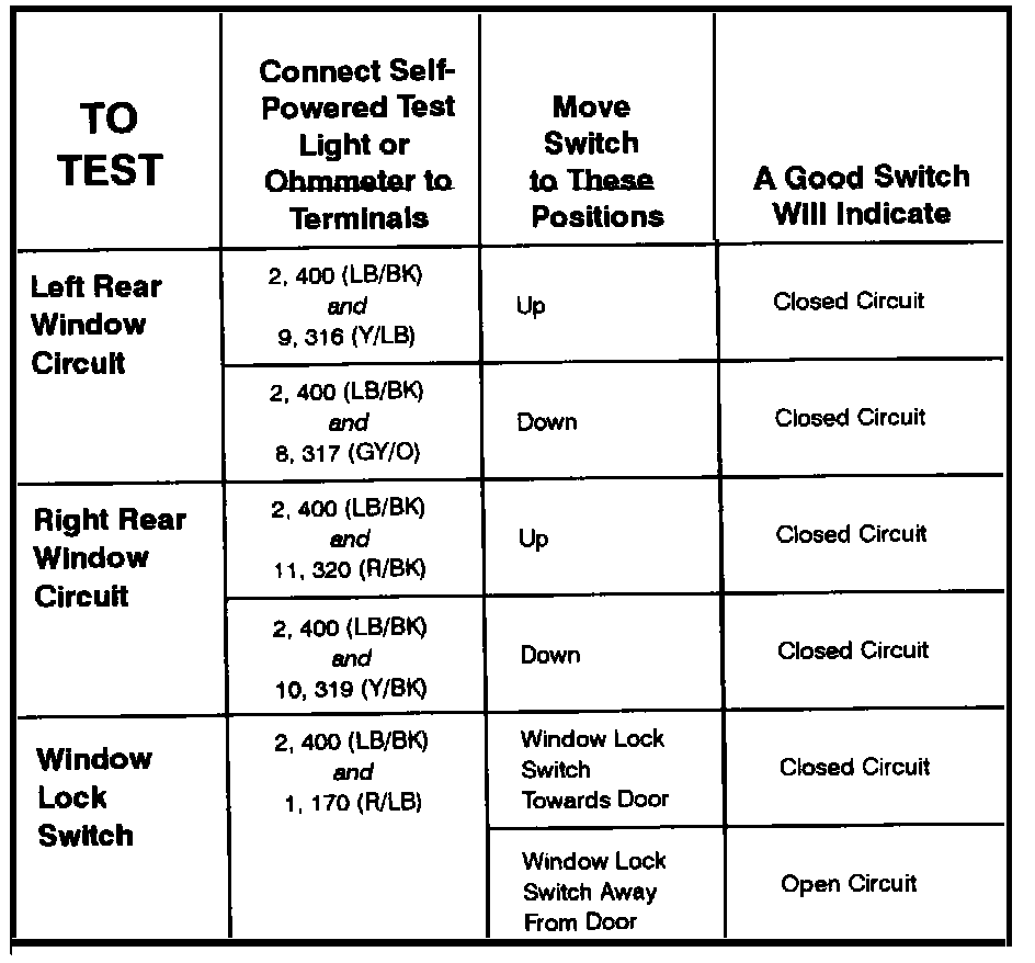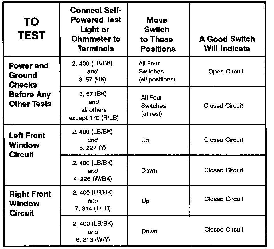 Power Window Switch: Testing and Inspection