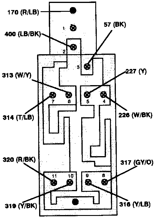 Master Window Control Switch - Terminal Locations On Switch:
