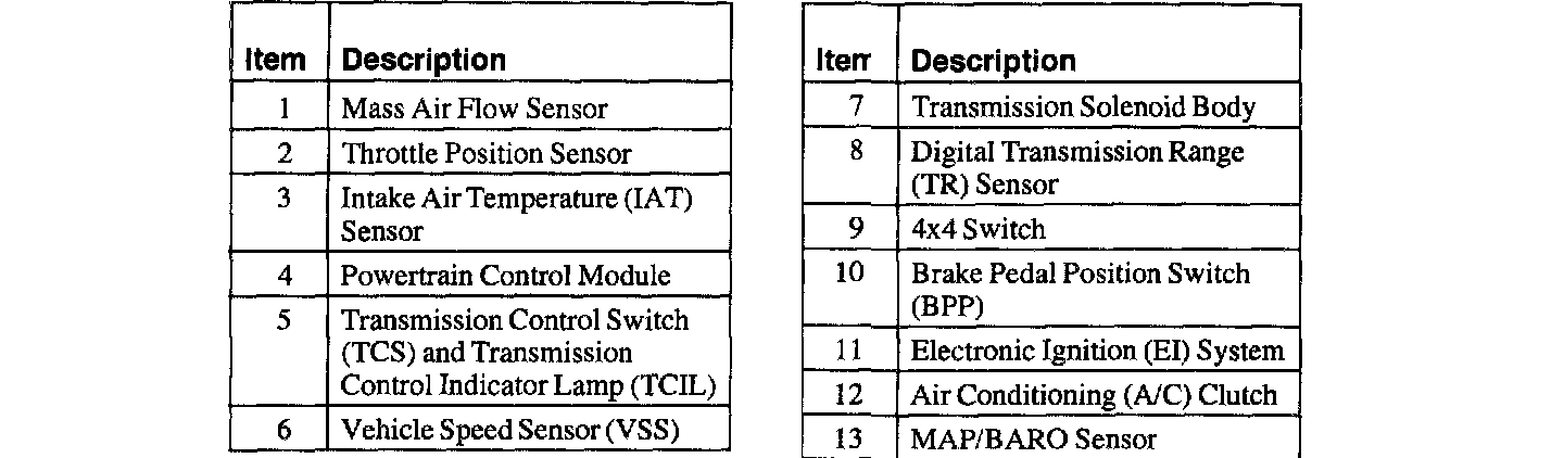 The following provides a brief description of each of the sensors and actuators used by the PCM for transmission operation.