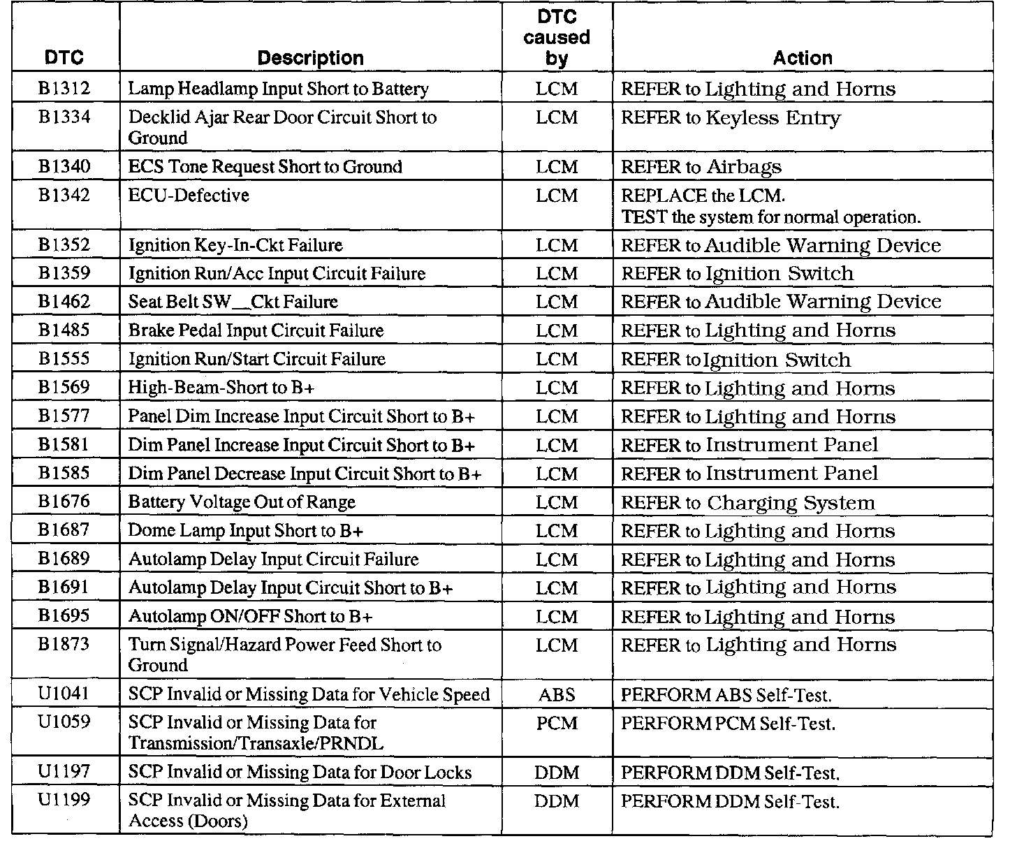 Lighting Control Module Diagnostic Trouble Code Index