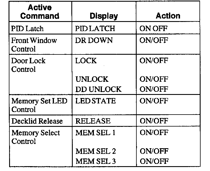 Driver Door Module (DDM) Active Command Index