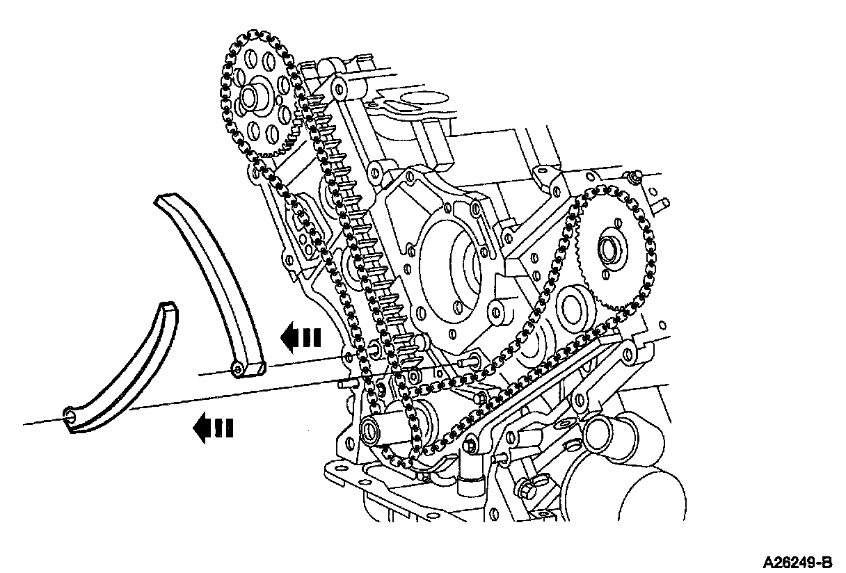 8. Remove the timing chains and crankshaft sprockets from the camshafts and crankshaft.