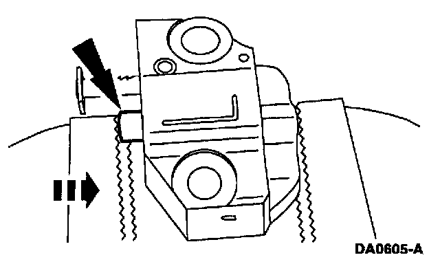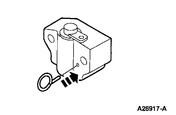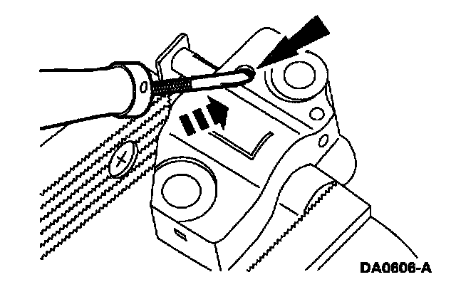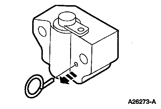 4. Install a paper clip into the hole in the tensioner housing to hold the ratchet assembly and plunger in during installation.