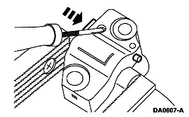 2. Using a small screwdriver or pick, push back and hold the ratchet mechanism.