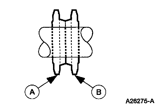 10. Make sure that the (A) RH crankshaft main bearing thrust washer is on the front of the (B) LH crankshaft main bearing thrust washer with the long hubs facing each other.