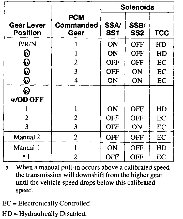 Shift Solenoid Operation Chart