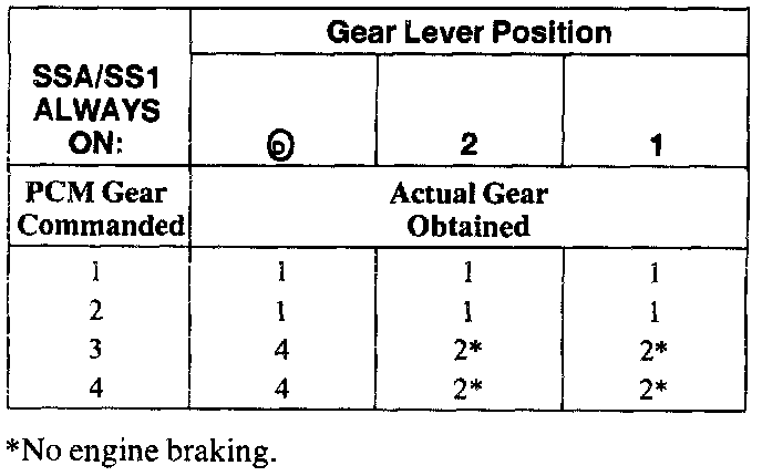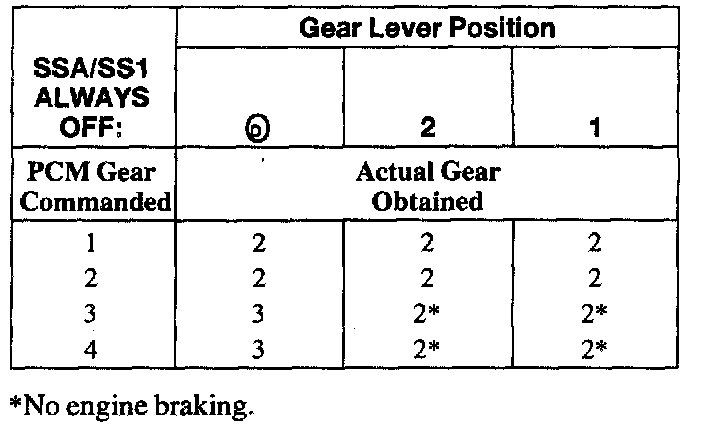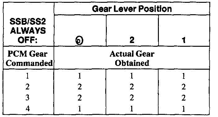 SHIFT SOLENOID FAILURE MODE CHART "ALWAYS OFF"