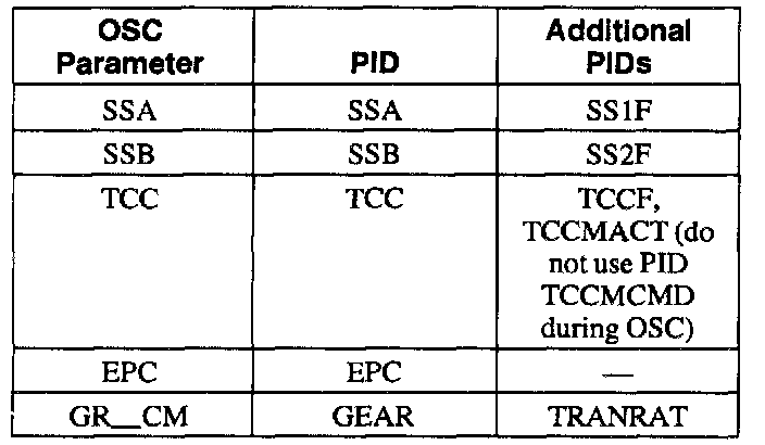To confirm that the OSC value was sent by the NGS and the EEC has accepted the OSC substitution, a corresponding PID for each OSC parameter must be monitored. Additional PIDs should be monitored to help the technician adequately diagnose the transmission.