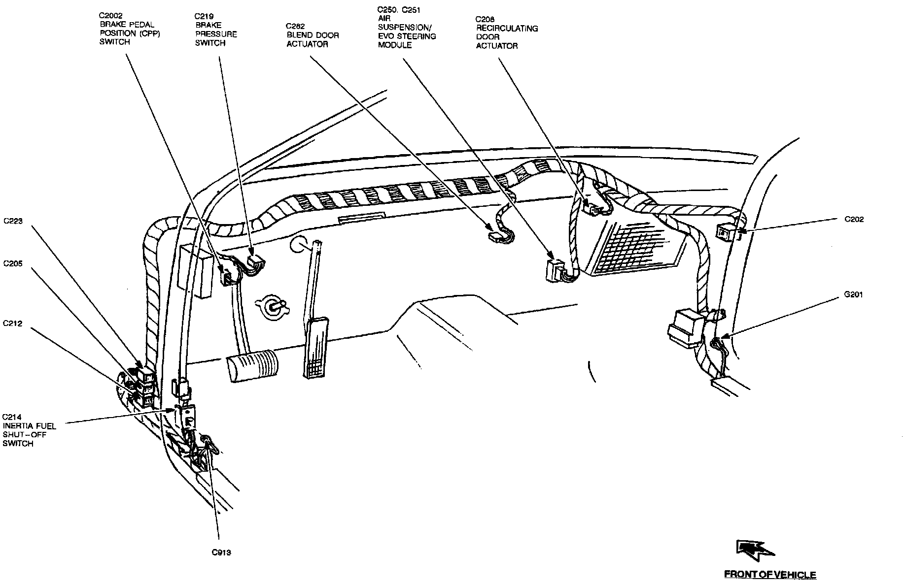 The Air Suspension/Electronic Variable Orifice Steering Module is located behind RF side of instrument panel.