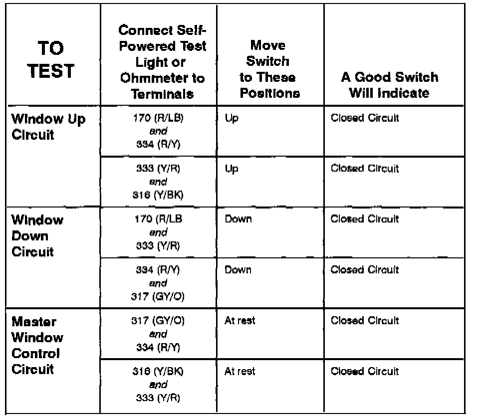 LR Window Control Switch - Component Testing Procedure:
