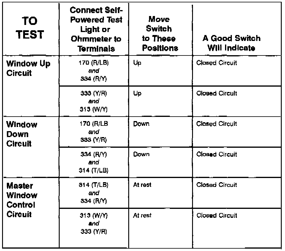 RF Window Control Switch - Component Testing Procedure:
