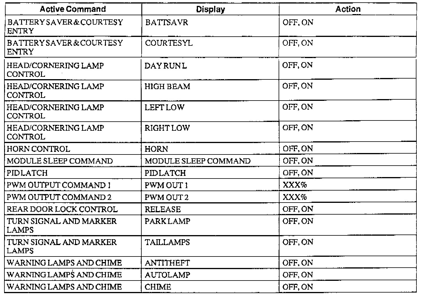 Lighting Control Module (LCM) Active Command Index