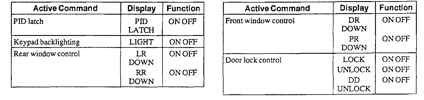 Driver Door Module (DDM) Active Command Index