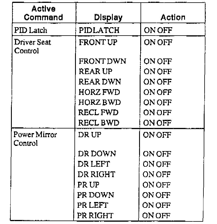 Driver Seat Module (DSM) Active Command Index