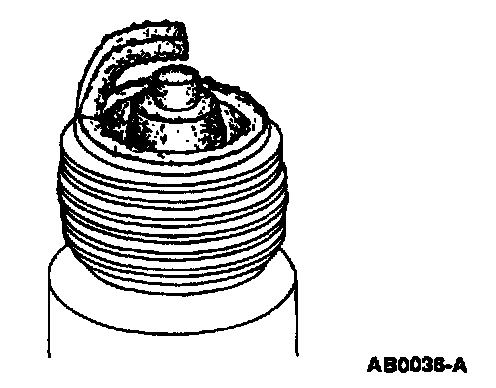 ^ Check for wet, black deposits on the insulator shell bore electrodes, caused by excessive oil entering the combustion chamber through worn rings and pistons, excessive valve-to-guide clearance or worn or loose bearings.