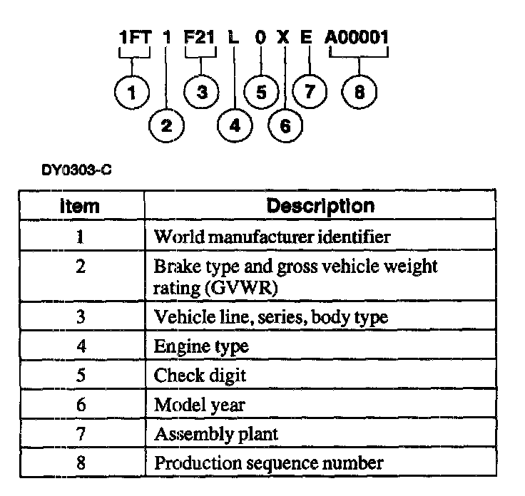 The Vehicle Identification Number (VIN) is a seventeen-digit combination of letters and numbers. The VIN is stamped on a metal tab riveted on the instrument panel lop upper left of the dash. The VIN number is also found on the Vehicle Certification (VC) label.