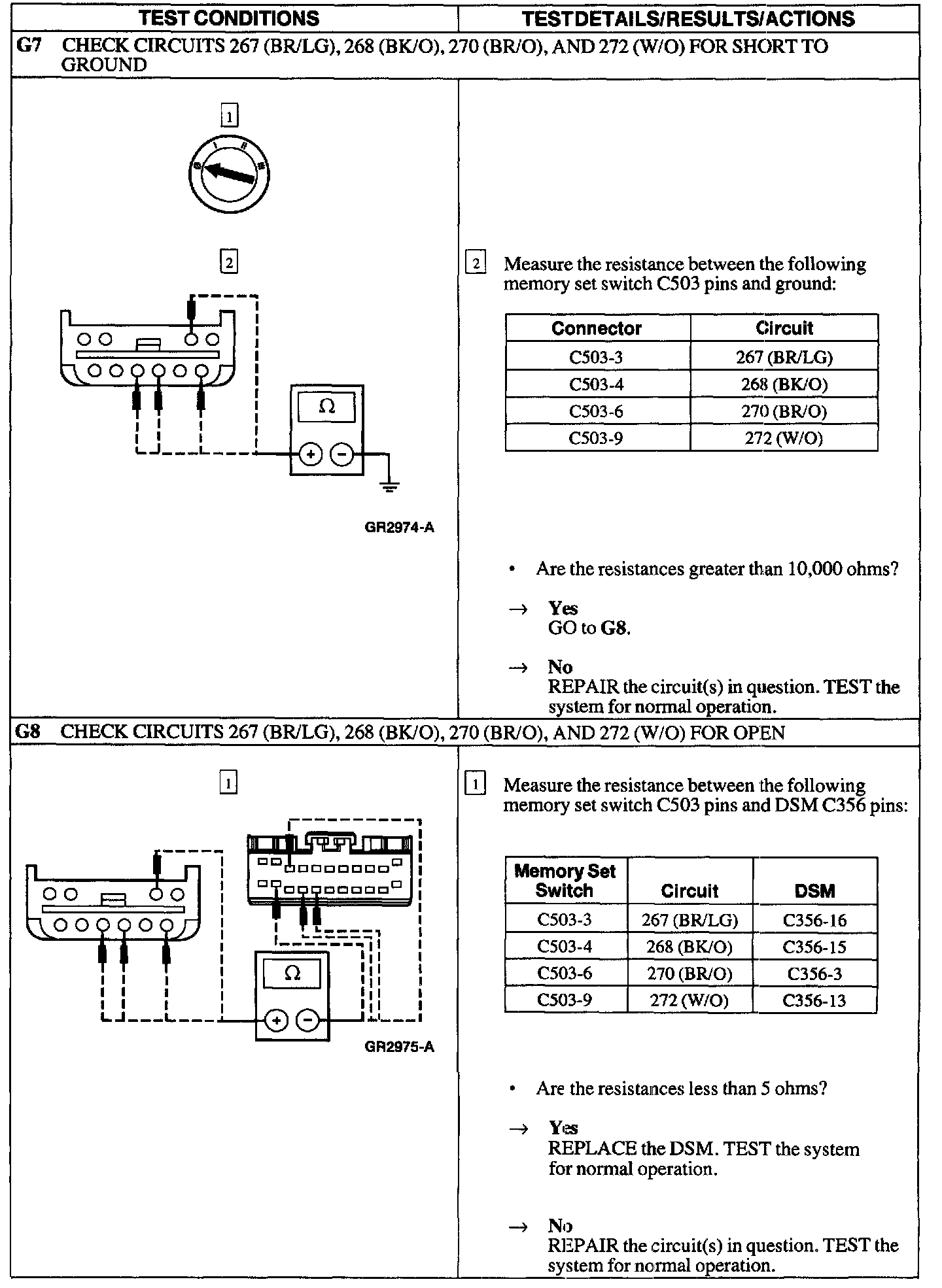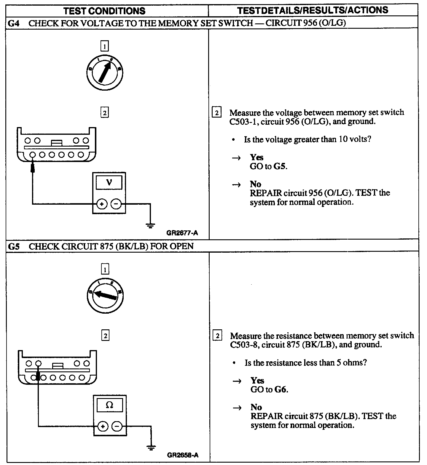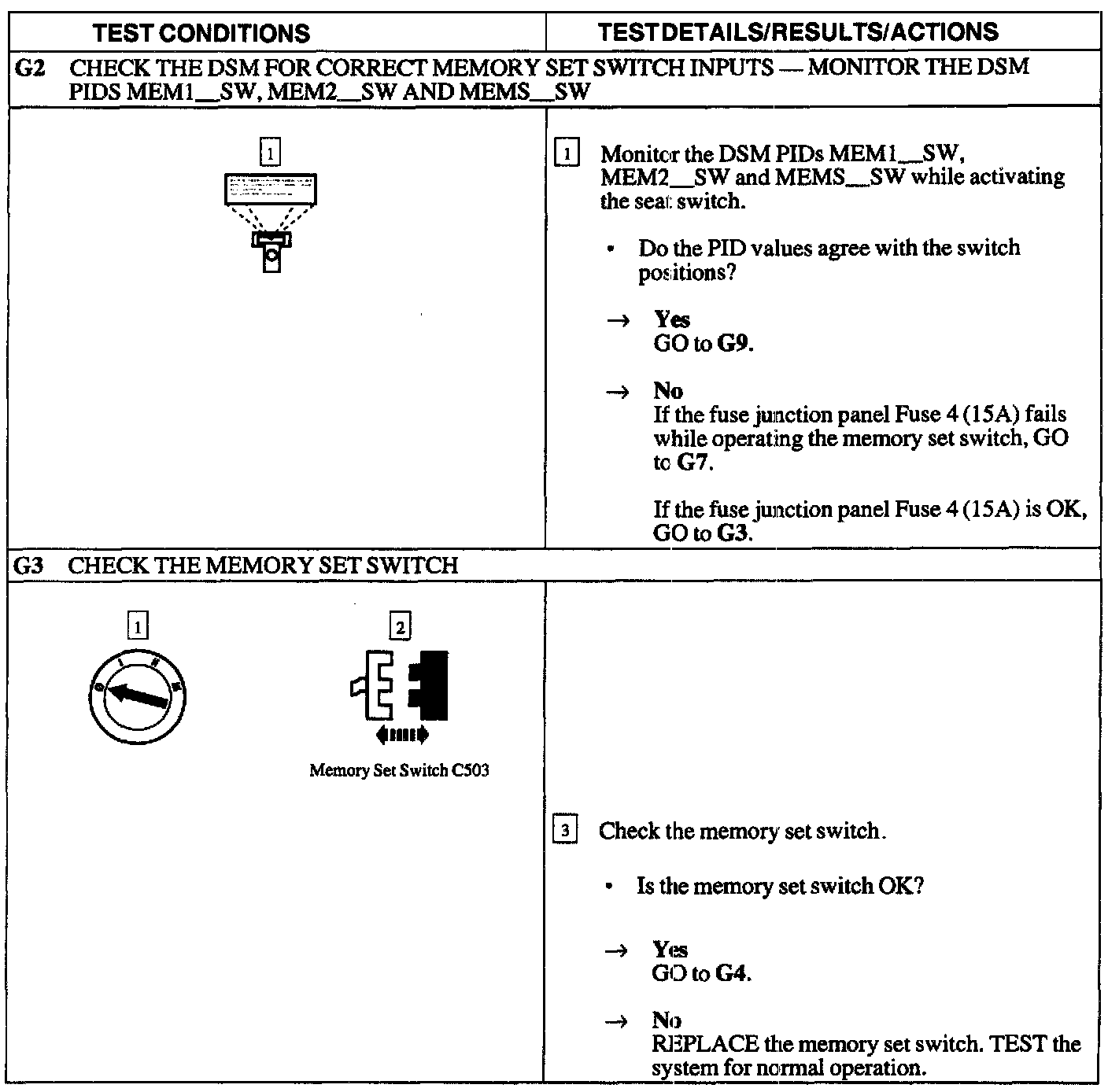 G: Memory Seat Inop-Inop Using Memory Set Switch