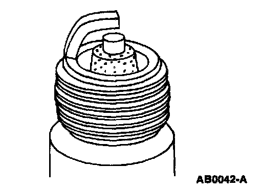 ^ Check for wet, black deposits on the insulator shell bore electrodes, caused by excessive oil entering the combustion chamber through worn rings and pistons, excessive valve-to-guide clearance or worn or loose bearings.