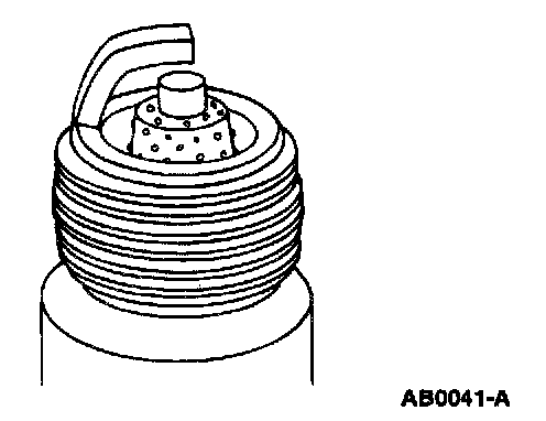 7. Inspect for pre-ignition, identified by melted electrodes and a possibly damaged insulator. Metallic deposits on the insulator indicate engine damage. This may be caused by incorrect ignition timing, wrong type of fuel or the installation of a heli-coil insert in place of the spark plug threads.