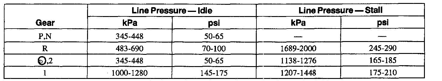 2. Start the engine and check the line pressures. Refer to the Line Pressure Chart to determine if the line pressure is within specification.