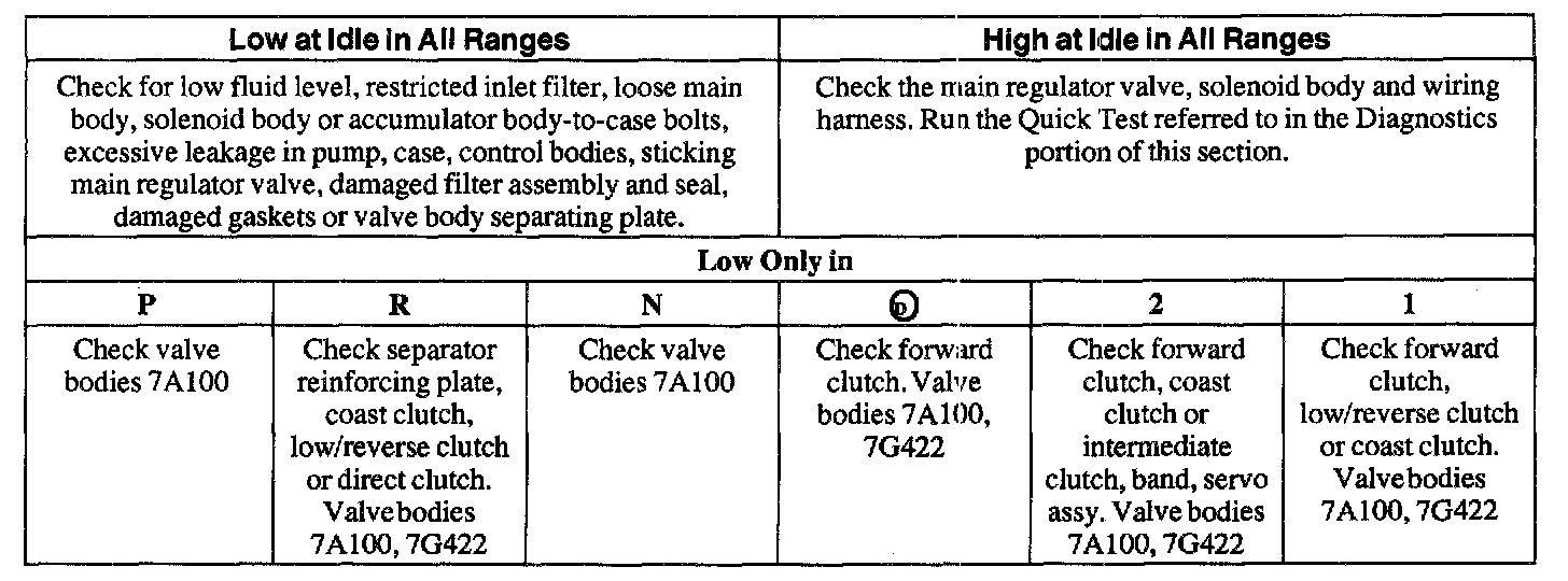 Line Pressure Diagnosis Chart: