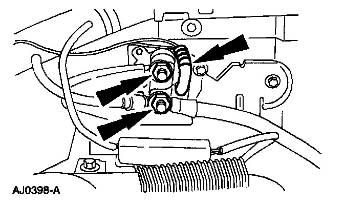 3 . Disconnect the starter motor solenoid relay switch wires and cables.