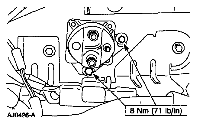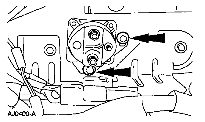 - Remove the starter motor solenoid relay switch terminal nuts.
