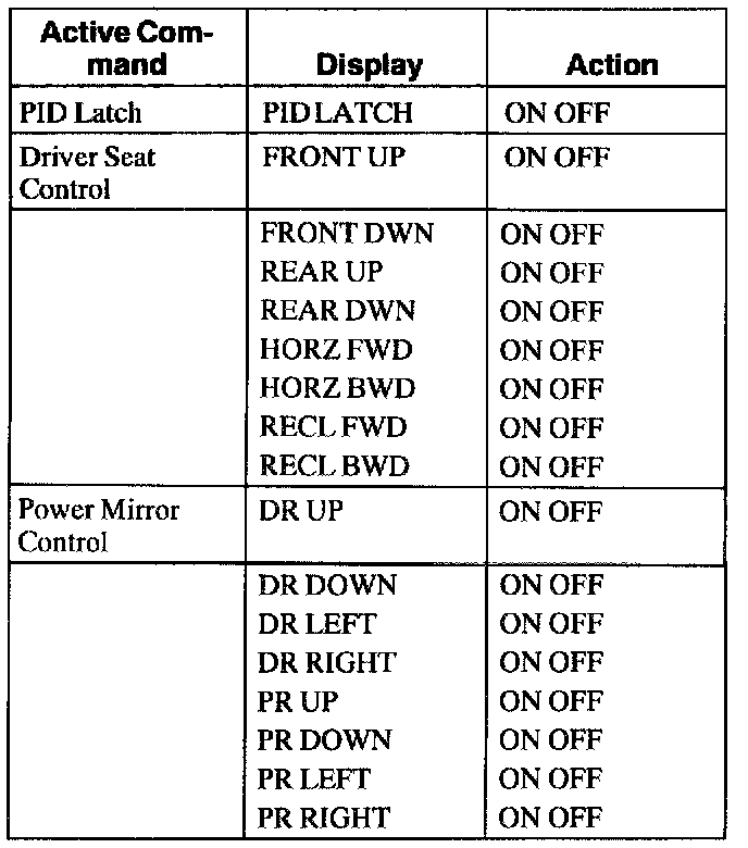 Driver Seat Module (DSM) Active Command Index