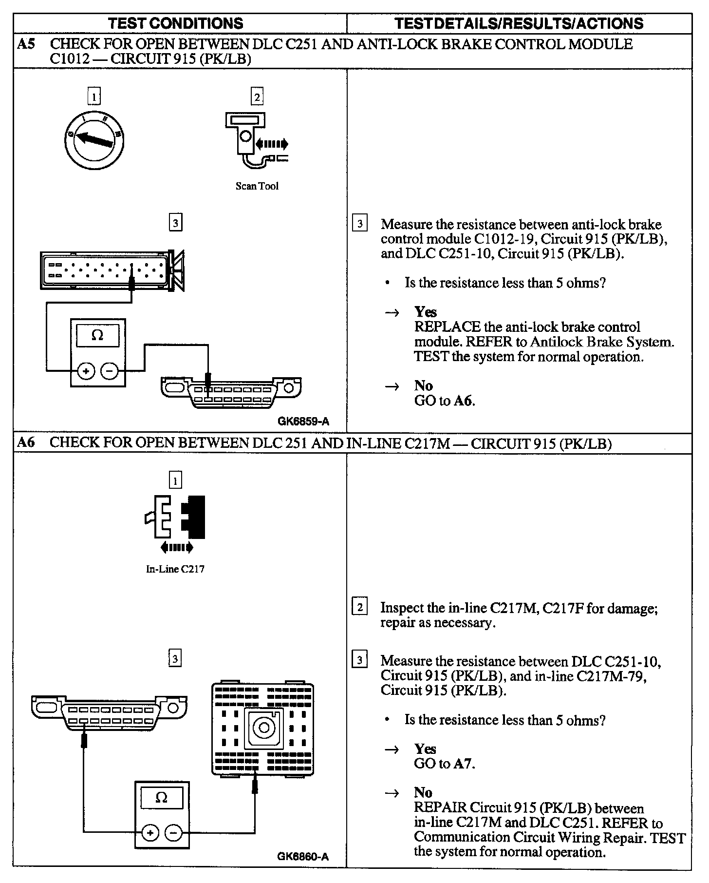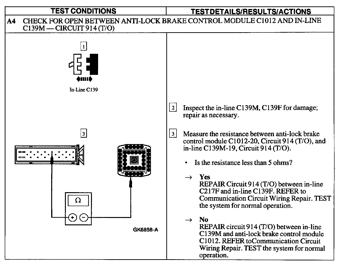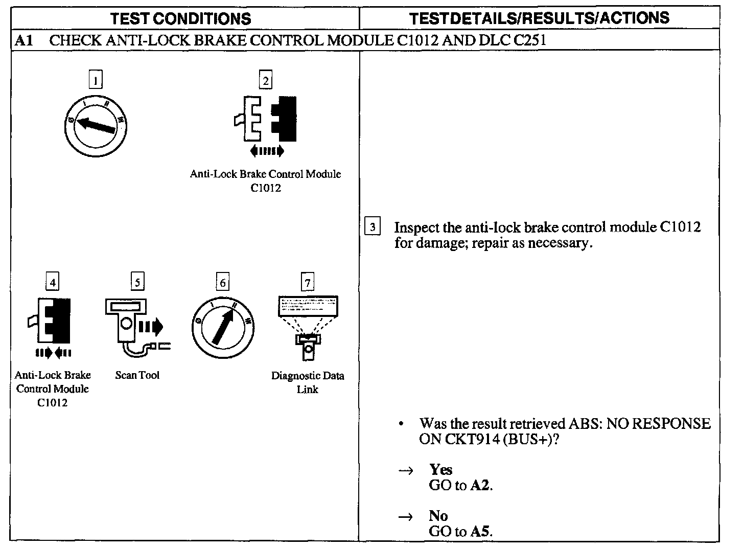 Test A: ABS Control Module Does Not Respond to the Scan Tool