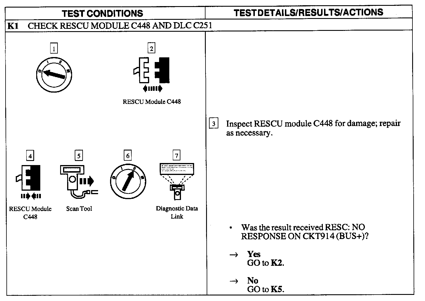 Test K: RESCU Module Does Not Respond To The Diagnostic Tool