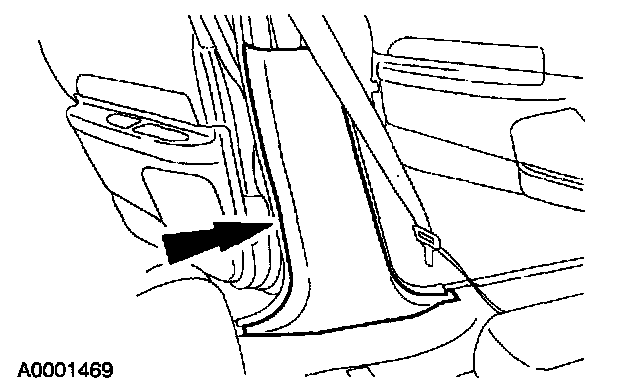 6. Remove the upper RH B-pillar trim panel. For additional information.