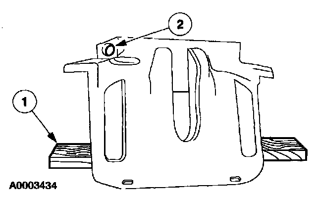 2 Apply low air pressure to the fluid port in the caliper and force out the caliper pistons to the block of wood.