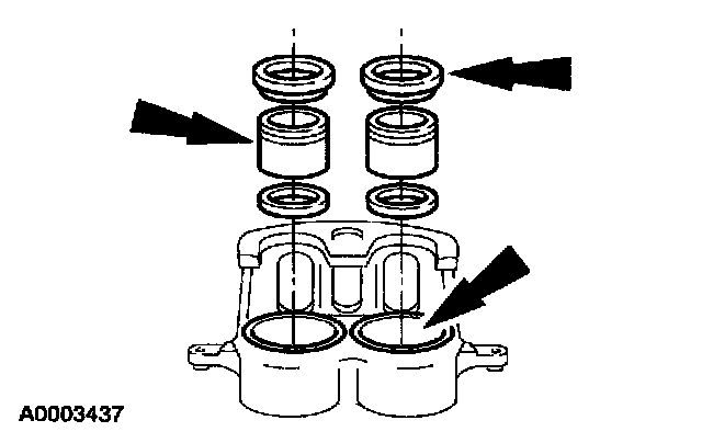 - Lubricate the caliper pistons and piston seals before assembly.