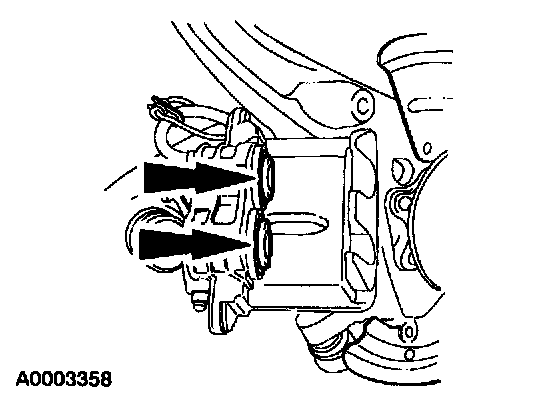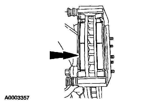 CAUTION: When removing the caliper, never allow it to hang from the brake hose. Provide a suitable support.