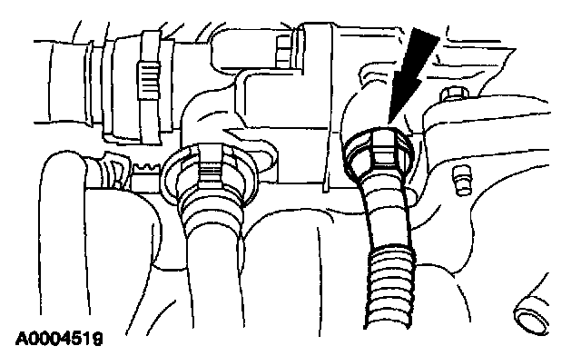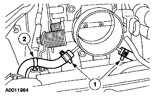 Note: Position the throttle body heater return hose out of the way before removing the throttle body.