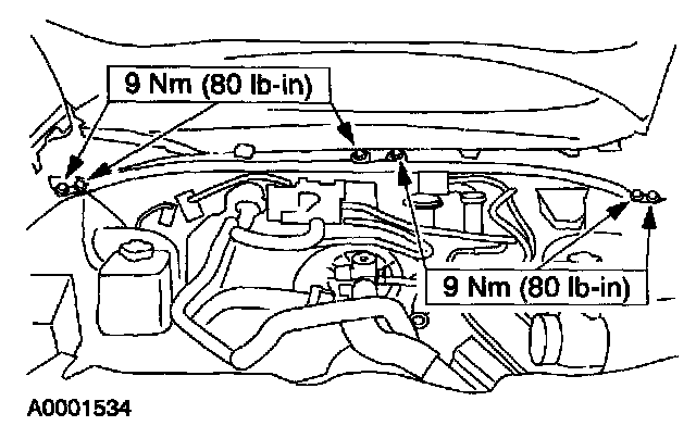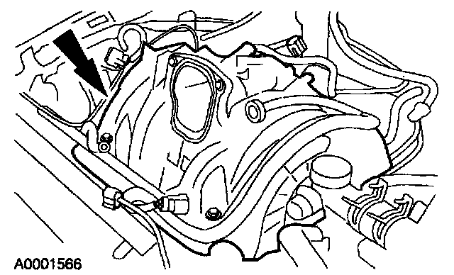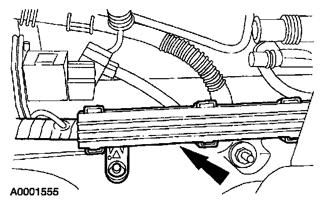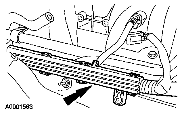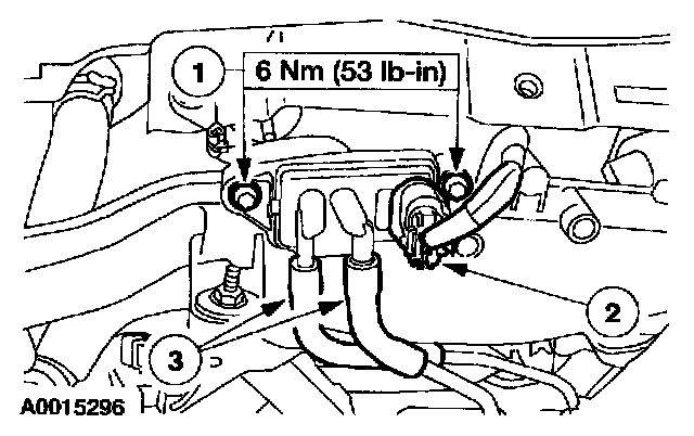2. Note: Make sure that the throttle body heater return hose is positioned between the heat shield and the intake manifold.