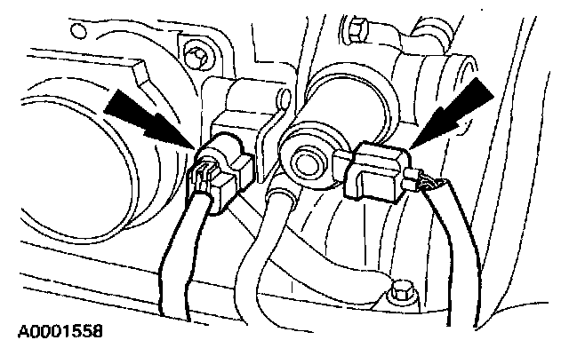 19. Raise the engine wiring harness and disconnect the LH fuel injector connectors.