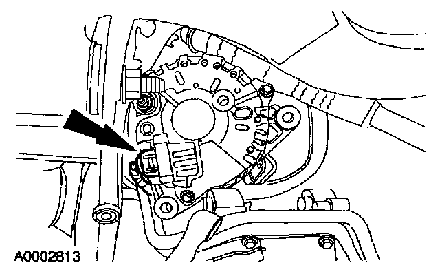 9. Lower the generator slightly and disconnect the electrical connector.