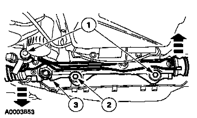 3 Rotate the steering gear rack to access the lower control arm rear bolt.