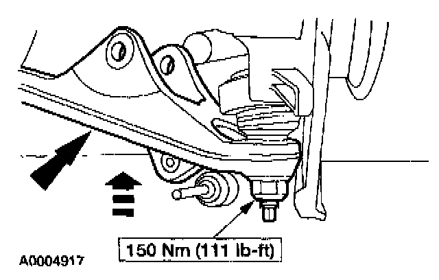 RemovalCAUTION: Suspension fasteners are critical parts because they affect the performance of vital components and systems and their failure can result in major service expense. A new part with the same part number must be installed if installation is necessary. Do not use a new part of lesser quality or substitute design. Torque values must be used as specified during reassembly to make sure of correct retention of these parts.