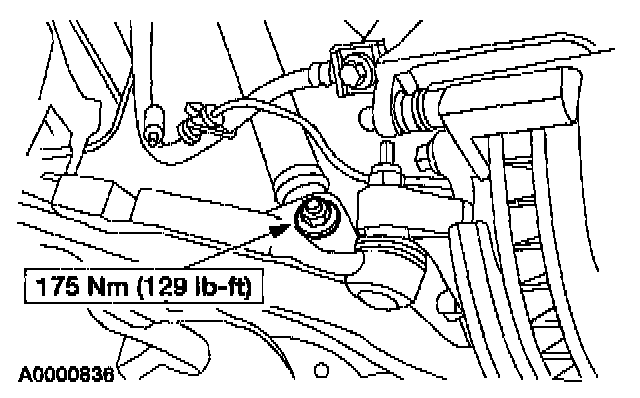 10. Remove and discard the rear nut and bolt. Remove the front suspension lower arm.