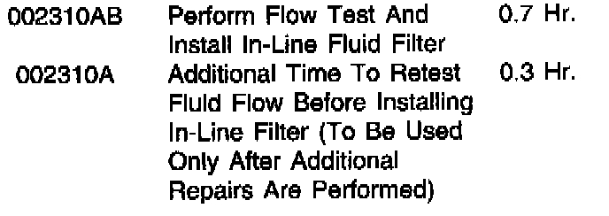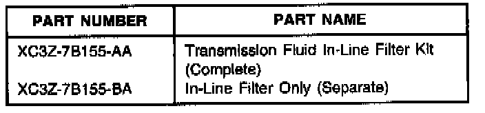 After every overhaul or transmission exchange, clean, flush and backflush the transmission fluid cooling system which includes: fluid cooler, auxiliary cooler, cooler lines, and Cooler Bypass Valve (CBV), if equipped. Perform the cooler flow test to ensure proper transmission fluid flow volume on the transmission return line through the cooling system. Once proper fluid flow volume is verified install the Transmission Fluid In-Line Filter Kit (XC3Z-7B155-AA) in the fluid cooler return line (transmission fluid flow coming out of the fluid cooler going into the transmission). Refer to the following Service Procedure for details.