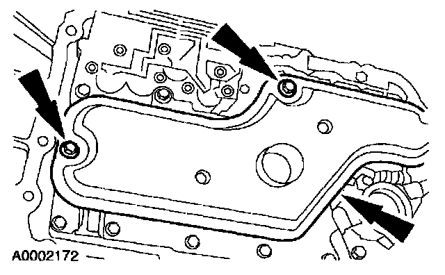 Remove the transmission fluid pan and gasket.