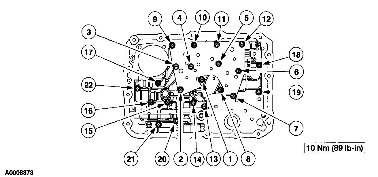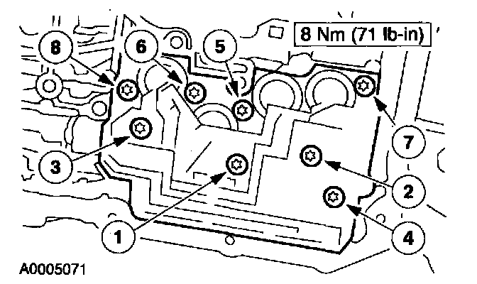 Install the solenoid body. Tighten the bolts in sequence shown.