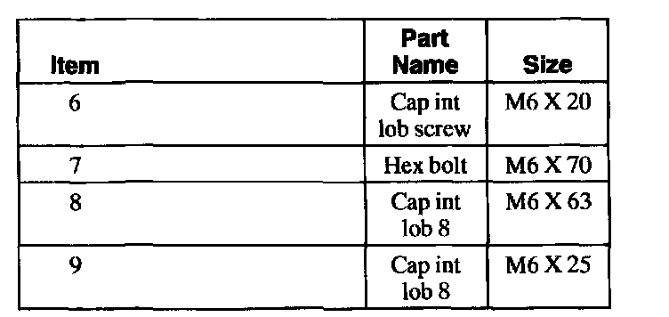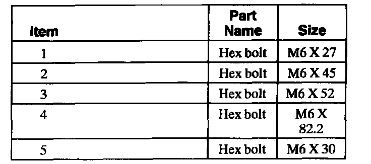 3. Refer to the chart for bolt locations: