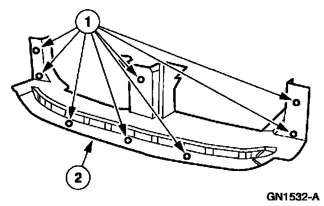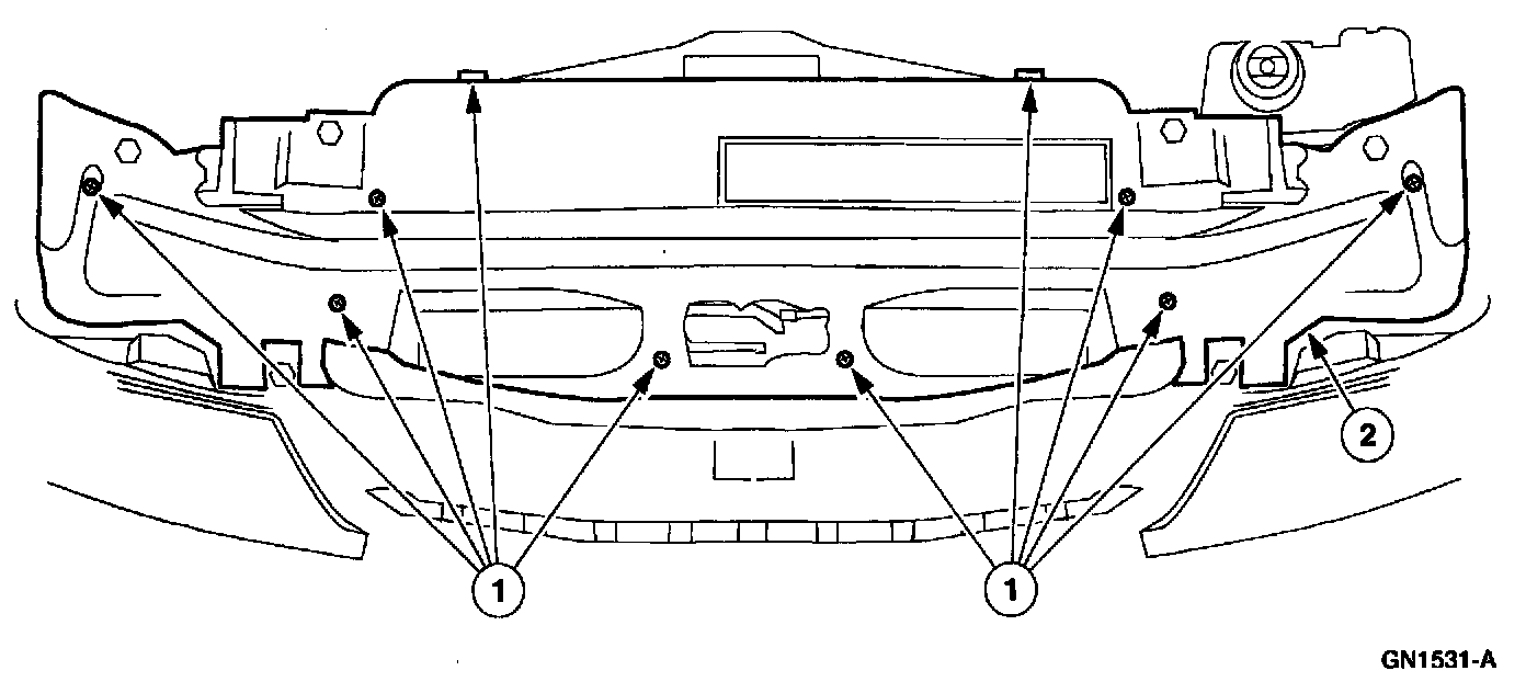 7. Remove the center radiator grille opening panel reinforcement bolts.