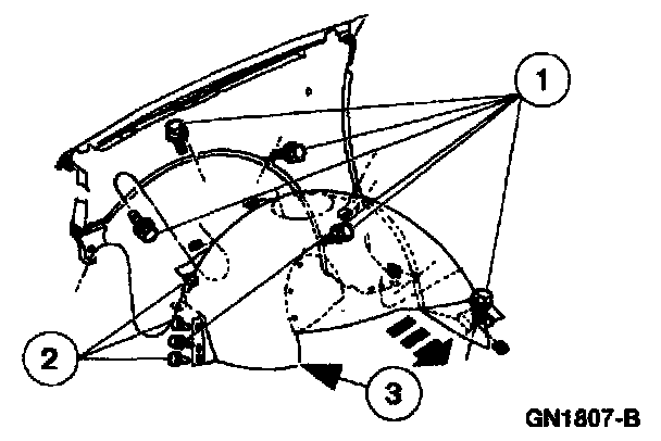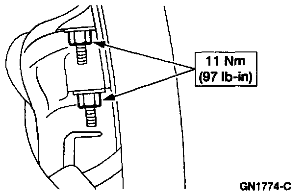 6. Remove the LH radiator grille opening panel reinforcement bolts.