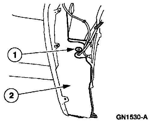 11. Remove the lower rear pin-type retainer from the front wheel opening moulding.